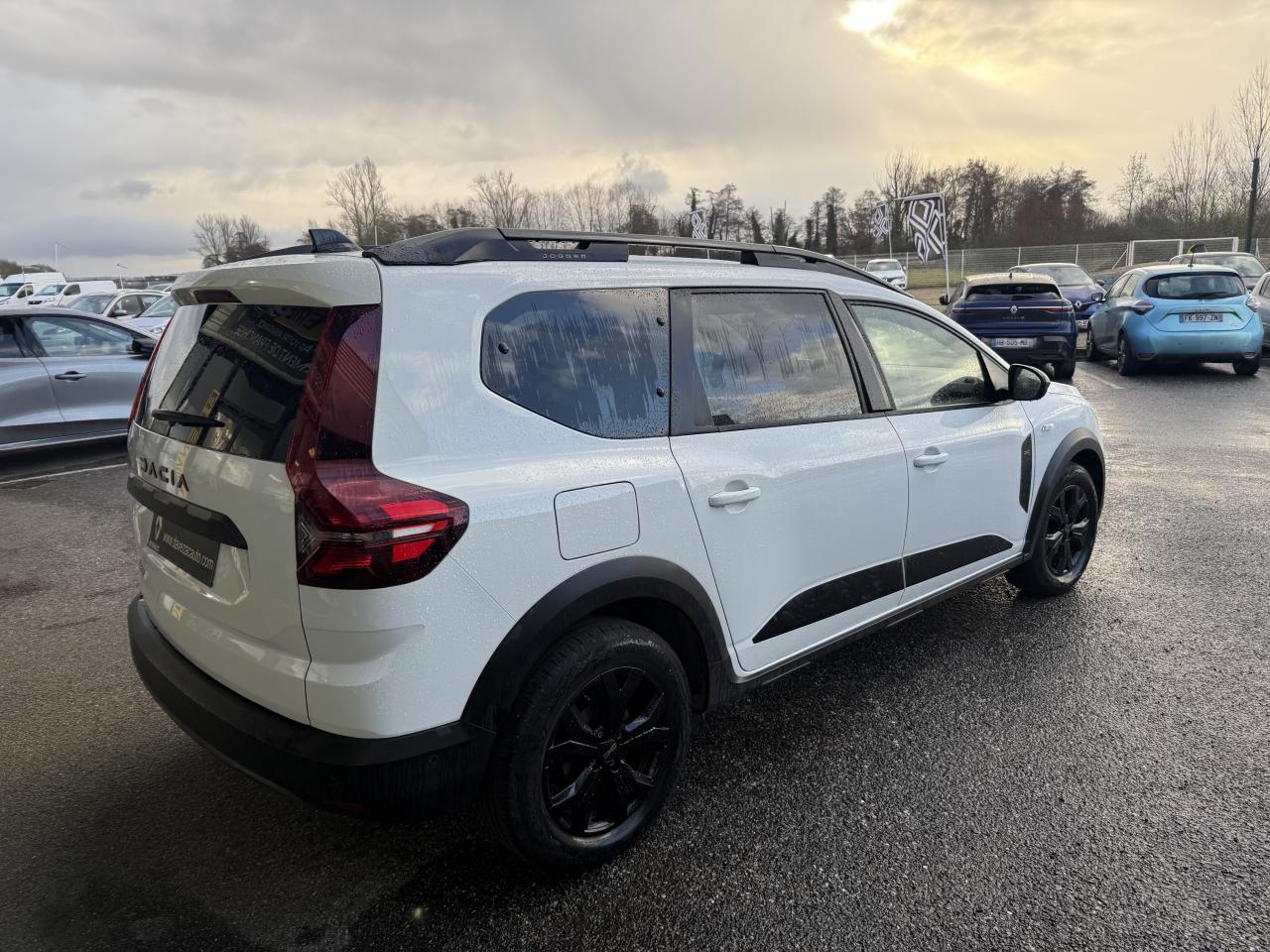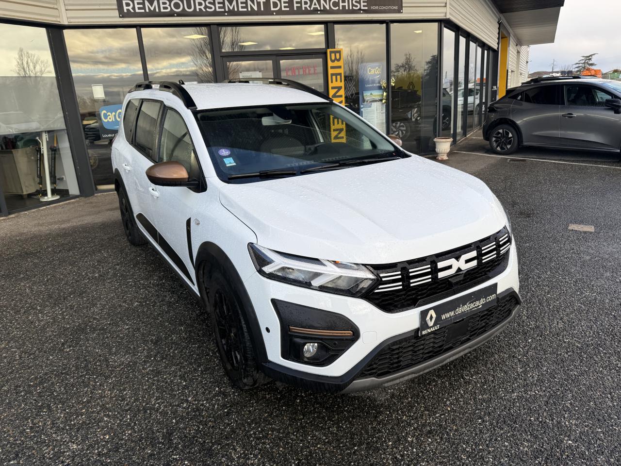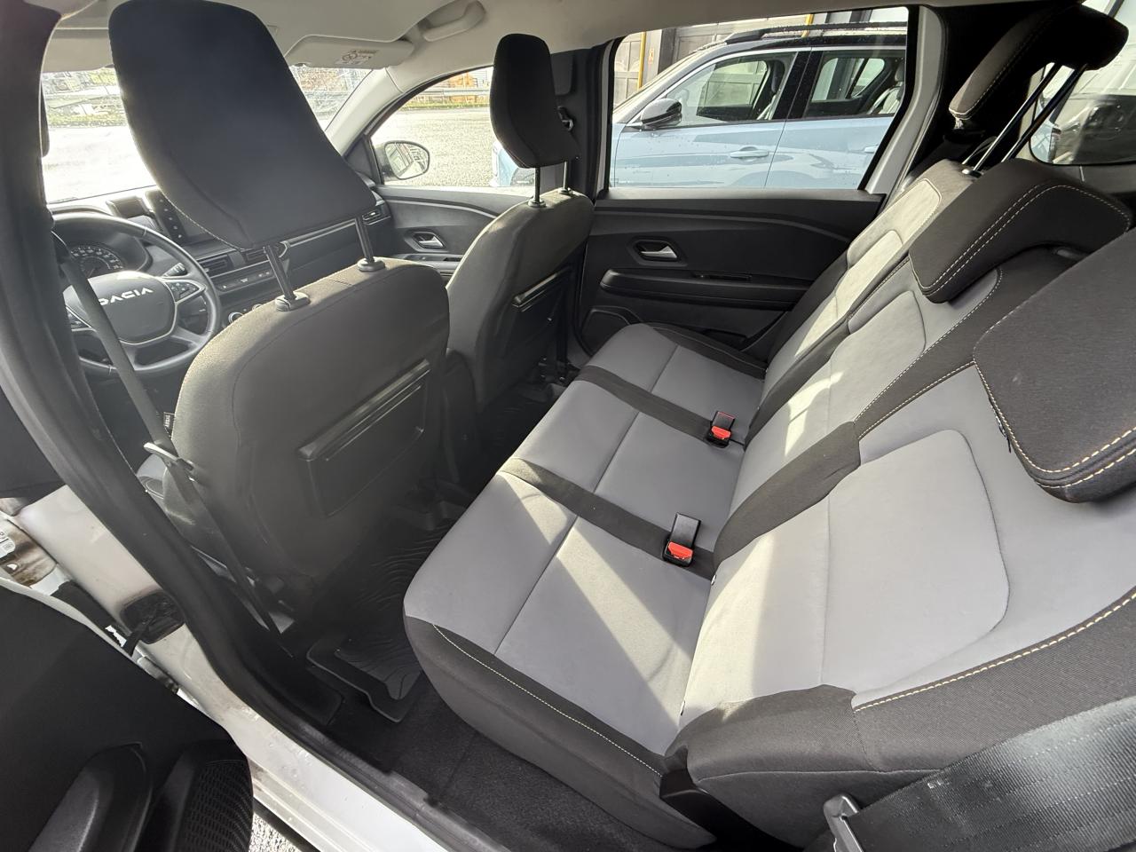 2 sièges rang 3 rabattables et amovibles de manière indépendanteAide au parking avantAide au stationnement arrièreAirbag frontal conducteurAirbag frontal passager déconnectableAirbags latéraux thorax conducteur et passager + Airbags rideaux de tête avant et arrièreAllumage automatique des essuie-glacesAppel d'urgence - EcallBanquette arrière rabattable et fractionnable 1/3-2/3Barres de toit longitudinales modulairesBoucliers avant et arrière ton carrosserieCaméra de reculCarte mains-libresCeintures de sécurité AV et latérales AR à prétensionneurs et limiteurs d'effortClimatisation automatiqueCondamnation des portes électriques, condamnation automatique en roulant incluseConsole centrale haute avec accoudoir central et espace de rangementContrôle de pression des pneus ( TPMS )Contrôle dynamique de trajectoire (ESP) avec aide au démarrage en côteDétecteur d'angle mortDirection assistée électriqueEco modeFeux de jour automatiques à LEDFrein de parking électriqueFreinage actif d’urgence (AEBS Interurbain)Jantes en aluminium 16" Mahalia noir brillantLève-vitre impulsionnel conducteur (avec fonction antipincement)Lève-vitres arrière électriquesLève-vitres avant électriques conducteur et passagerLimiteur de vitesse avec avertisseur sonoreMedia NAV : navigation, radio DAB, réplication smartphone wifi, connexion Bluetooth, six haut-parleurs (4 haut-parleurs + 2 tweeters), écran tactile 8”, support téléphone amovible + 1 USB supplémentaire en bas de la console centralePrise USBProjecteurs antibrouillardProtection de passages de roue et bas de marche noirsRégulateur de vitesseRétroviseurs extérieurs à réglage électriqueRevêtement en TEP Micro Cloud sur la planche de bord et les accoudoirs des portes avantSellerie Mixte TEP Micro Cloud avec surpiqûres Brun Cuivré et embossage avec l'emblème DaciaSignature lumineuse à LEDSticker type snorkelStop & StartSurtapis caoutchouc marquage Dacia et seuil de porte avantSystème antiblocage des roues (ABS) & Assistance au freinage d'urgence (AFU)Système de fixation Isofix pour siège enfant aux places latérales du rang 2Tablettes aviation au dos des sièges de la 1ère rangéeVitres arrière surteintéesVolant réglable en hauteurVolant réglable en profondeurVolant soft feel et pièce déco gris acier