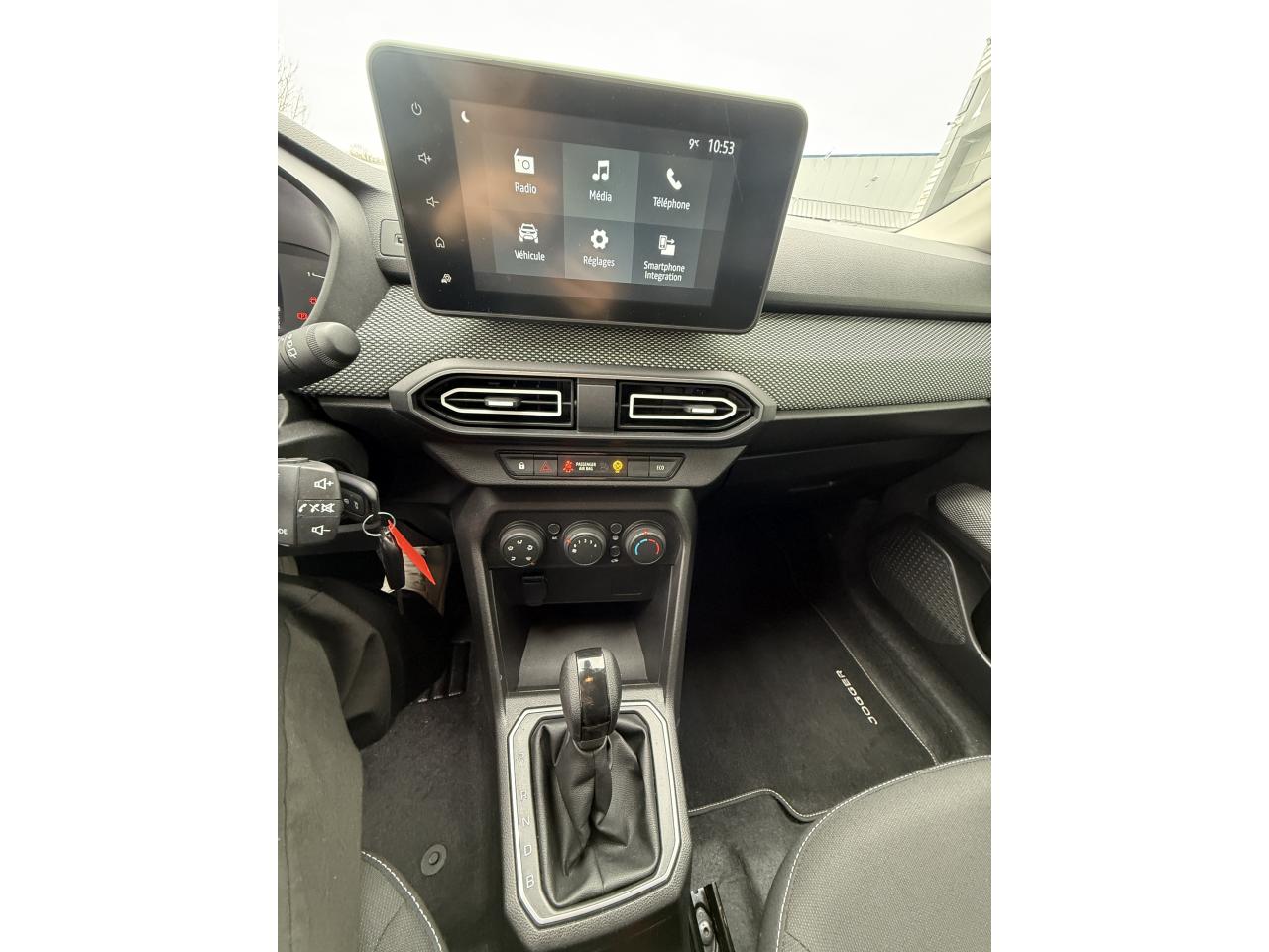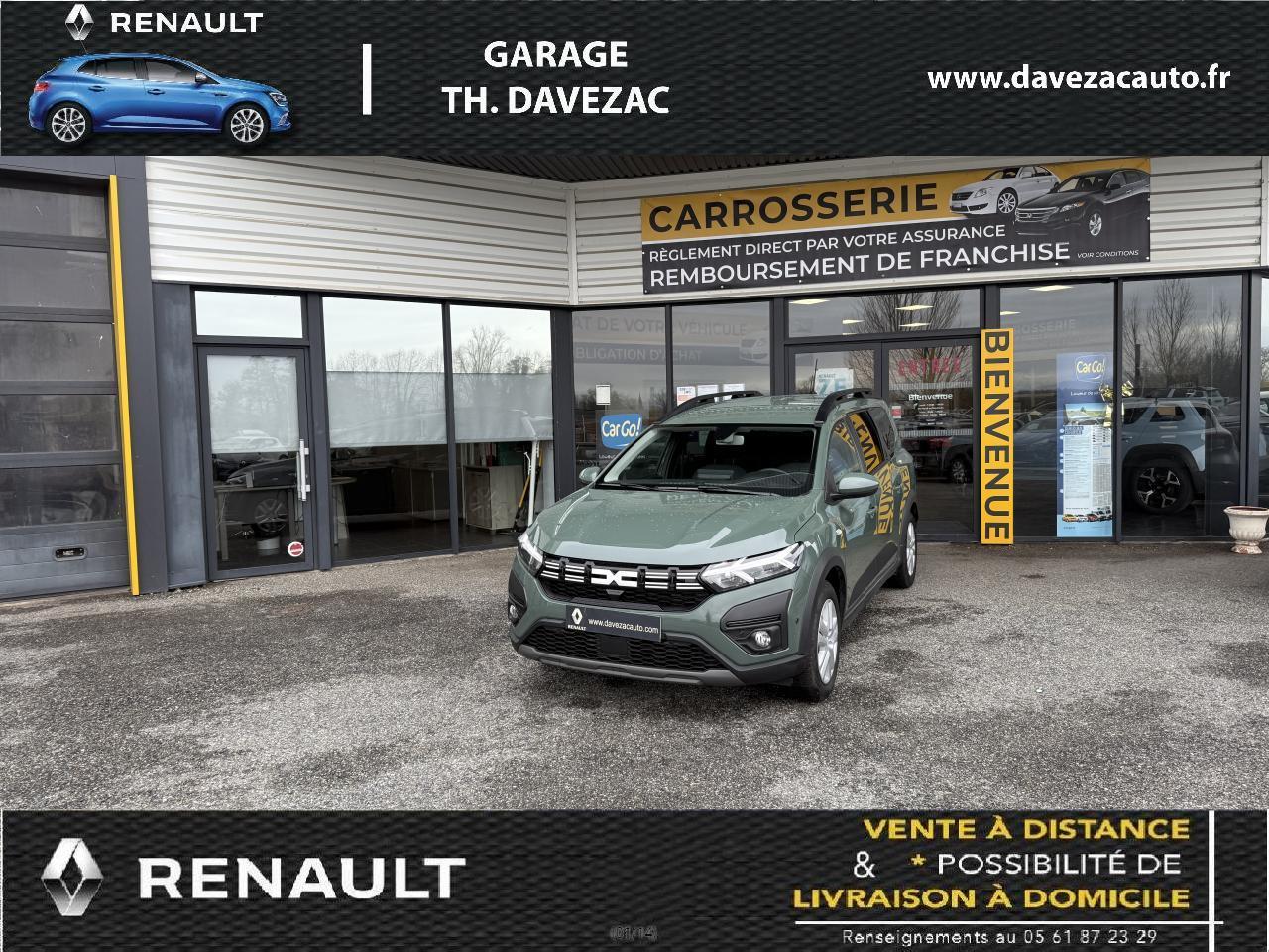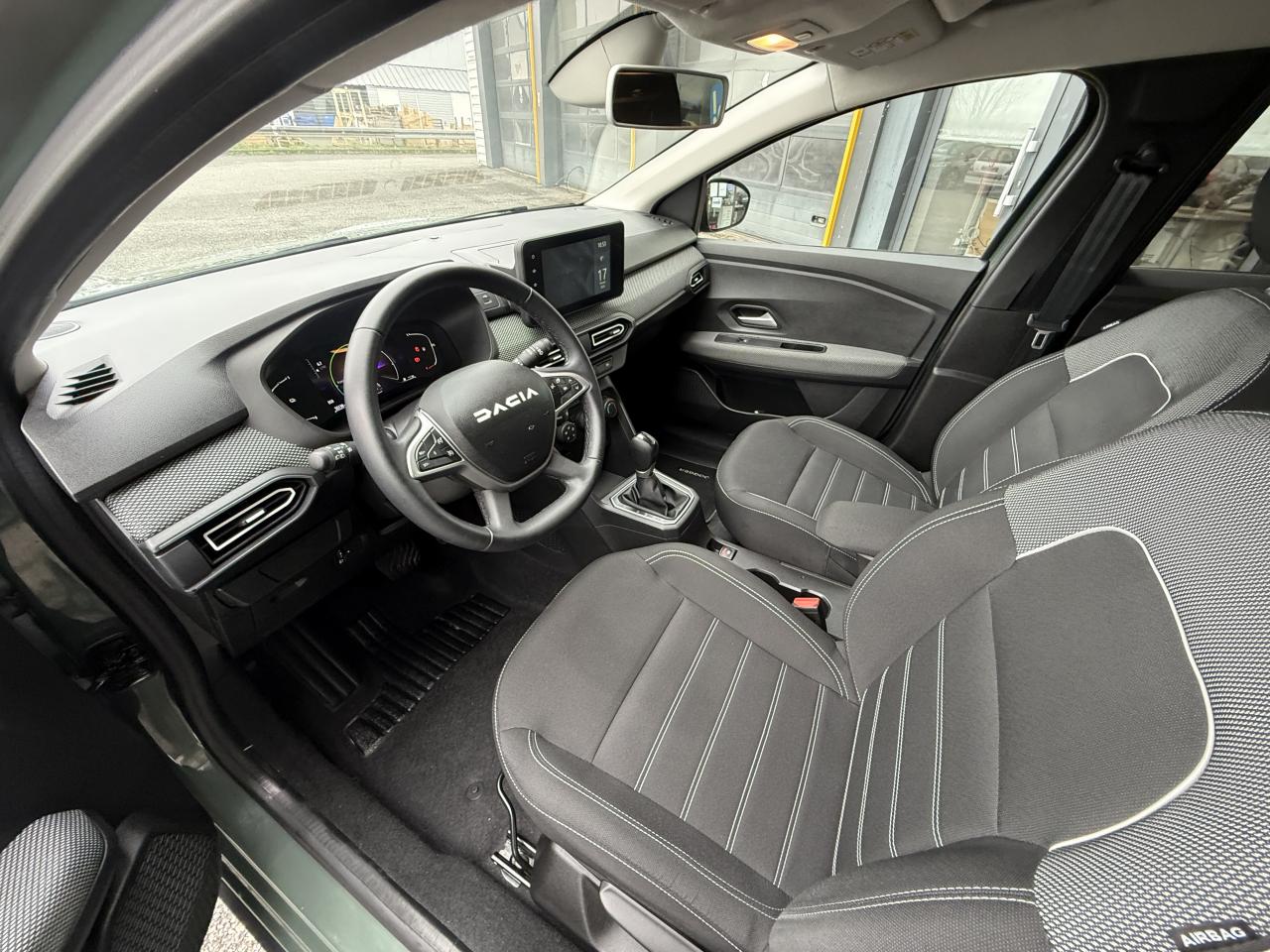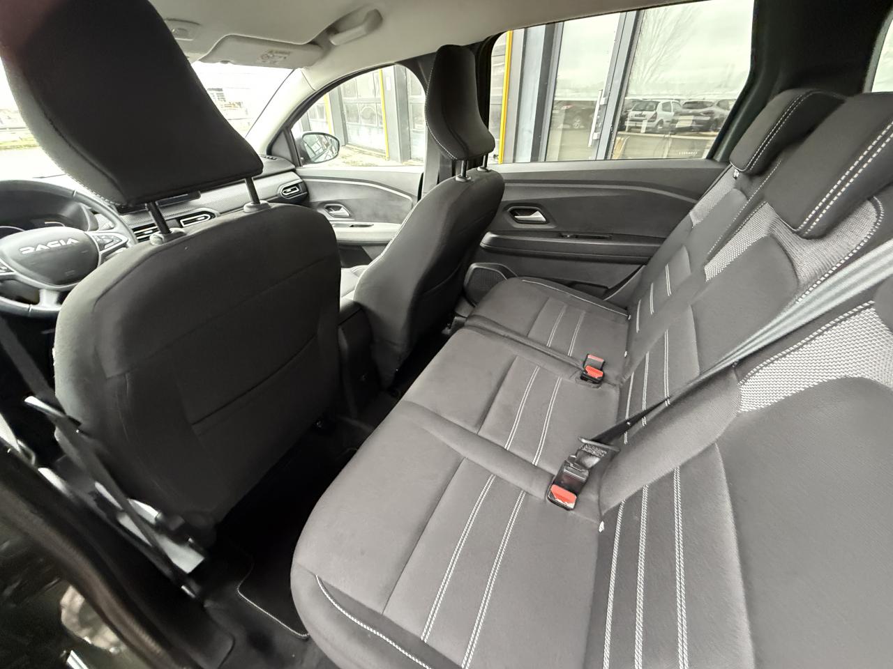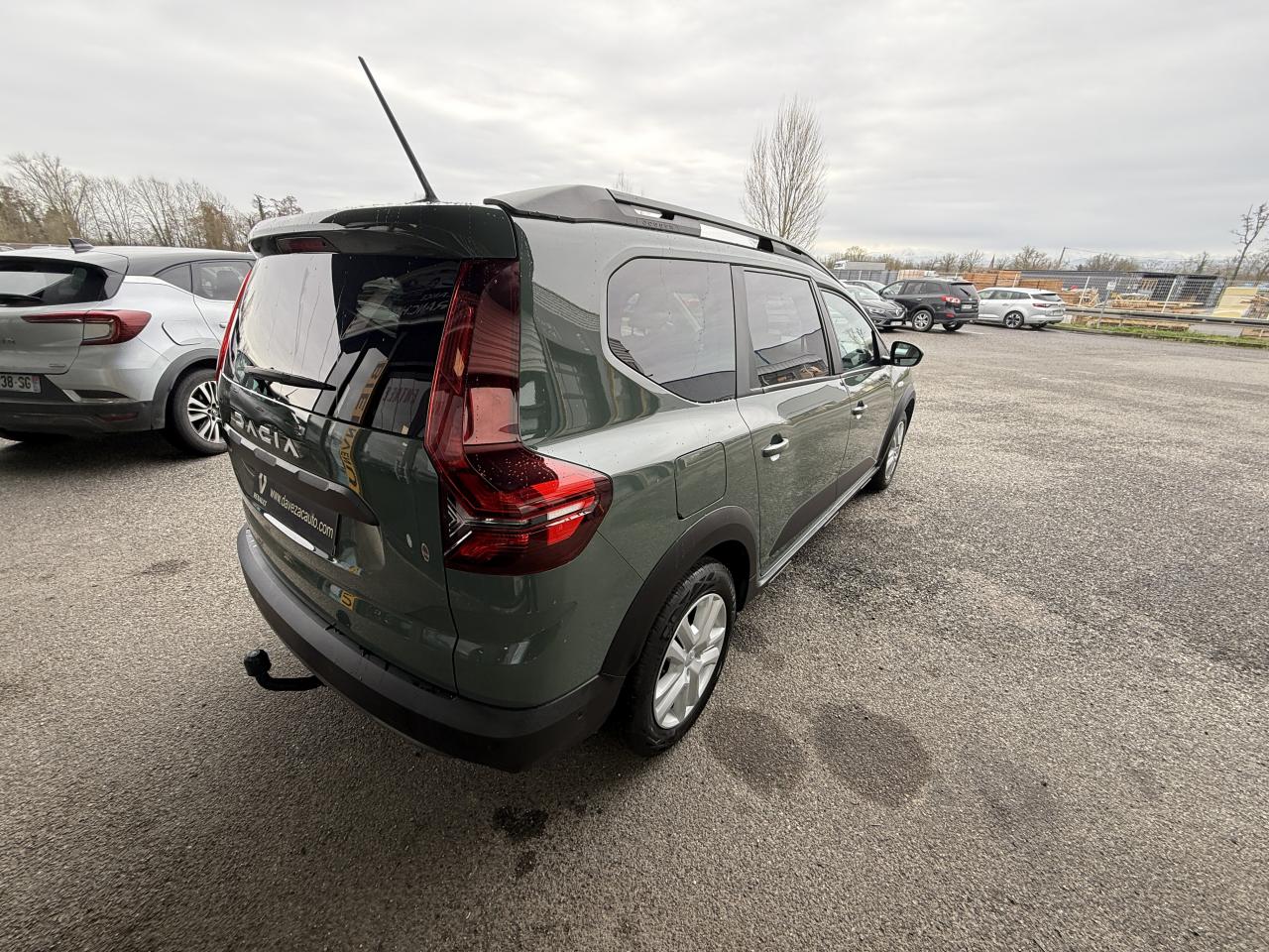2 sièges rang 3 rabattables et amovibles de manière indépendanteAccoudoir sur siège conducteurAide au stationnement arrièreAirbag frontal conducteurAirbag frontal passager déconnectableAirbags latéraux thorax conducteur et passager + Airbags rideaux de tête avant et arrièreAllumage automatique des essuie-glacesAppel d'urgence - EcallBanquette arrière rabattable et fractionnable 1/3-2/3Barres de toit longitudinales modulairesCalandre noire logo Dacia BlancCeintures de sécurité AV et latérales AR à prétensionneurs et limiteurs d'effortCentre des aérateurs BlancClimatisation manuelleCondamnation des portes électriques, condamnation automatique en roulant incluseConsole centrale haute avec accoudoir central et espace de rangementContours des aérateurs Gris fuméContrôle de pression des pneus ( TPMS )Contrôle dynamique de trajectoire (ESP) avec aide au démarrage en côteDirection assistée électriqueEco modeFeux de jour automatiques à LEDFrein de parking électriqueFreinage actif d’urgence (AEBS Interurbain)Garde au sol surelevéeLève-vitre impulsionnel conducteur (avec fonction antipincement)Lève-vitres arrière électriquesLève-vitres avant électriques conducteur et passagerLimiteur de vitesse avec avertisseur sonoreMedia Display 8” : Radio DAB + smartphone replication via câble USB, connexion Bluetooth, 4 haut-parleurs, écran tactile 8” + support téléphone amovibleOrdinateur de bord : distance parcourue, vitesse moyenne, autonomie, consommation moyennePoignées de portes couleur carrosseriePoignées de portes intérieures Gris AcierPrise USBPrises 12 V à l'avant et à l'arrièreProjecteurs antibrouillardRégulateur de vitesseRétroviseurs extérieurs à réglage électriqueRétroviseurs extérieurs couleur carrosserieSiège conducteur réglable en hauteurSignature lumineuse à LEDSkis avant / arrière Gris MégalitheStop & StartSystème antiblocage des roues (ABS) & Assistance au freinage d'urgence (AFU)Système de fixation Isofix pour siège enfant aux places latérales du rang 2Volant réglable en hauteurVolant réglable en profondeurVolant soft feel et pièce déco gris acier