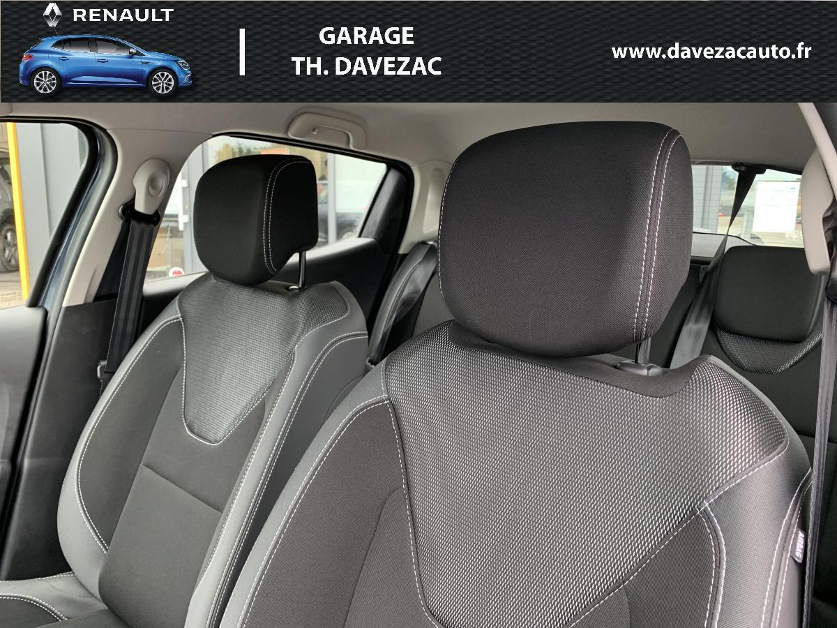 ABS et Assistance au Freinage d'Urgence (AFU)Aide au démarrage en côteAirbags frontaux et latéraux conducteur et passager déconnectablesAlerte de ceinture de sécurité conducteur et passagerBanquette arrière rabattable 1/3-2/3 avec 3 appuis-tête réglables en hauteurBecquet de hayon arrièreCarte Renault à télécommandeClimatisation manuelleCondamnation automatique des ouvrants en roulantDirection assistée électrique à assistance variableEnjoliveurs 15'' LagoonEssuie-vitre à cadencementFeux de jour à LEDHarmonie Carbone FoncéIndicateur de changement de vitessesLève-vitres électriques à l'avantLunette arrière chauffanteOrdinateur de bordPare-soleil conducteur et passager avec miroir de courtoisiePoignées de porte ton carrosserieProjecteurs double optique halogènesRégulateur et limiteur de vitesseRétroviseurs extérieurs électriques dégivrantsRétroviseurs extérieurs ton carrosserieRadio Connect R&Go avec support téléphone et commande satellite au volantSellerie tissu noir/grisSiège conducteur réglable en hauteurSystème de contrôle de trajectoire (ESP) et système antipatinage (ASR)Système de surveillance de la pression des pneusSystème Isofix aux places latérales ARVitres teintéesVolant réglable en hauteur et en profondeur