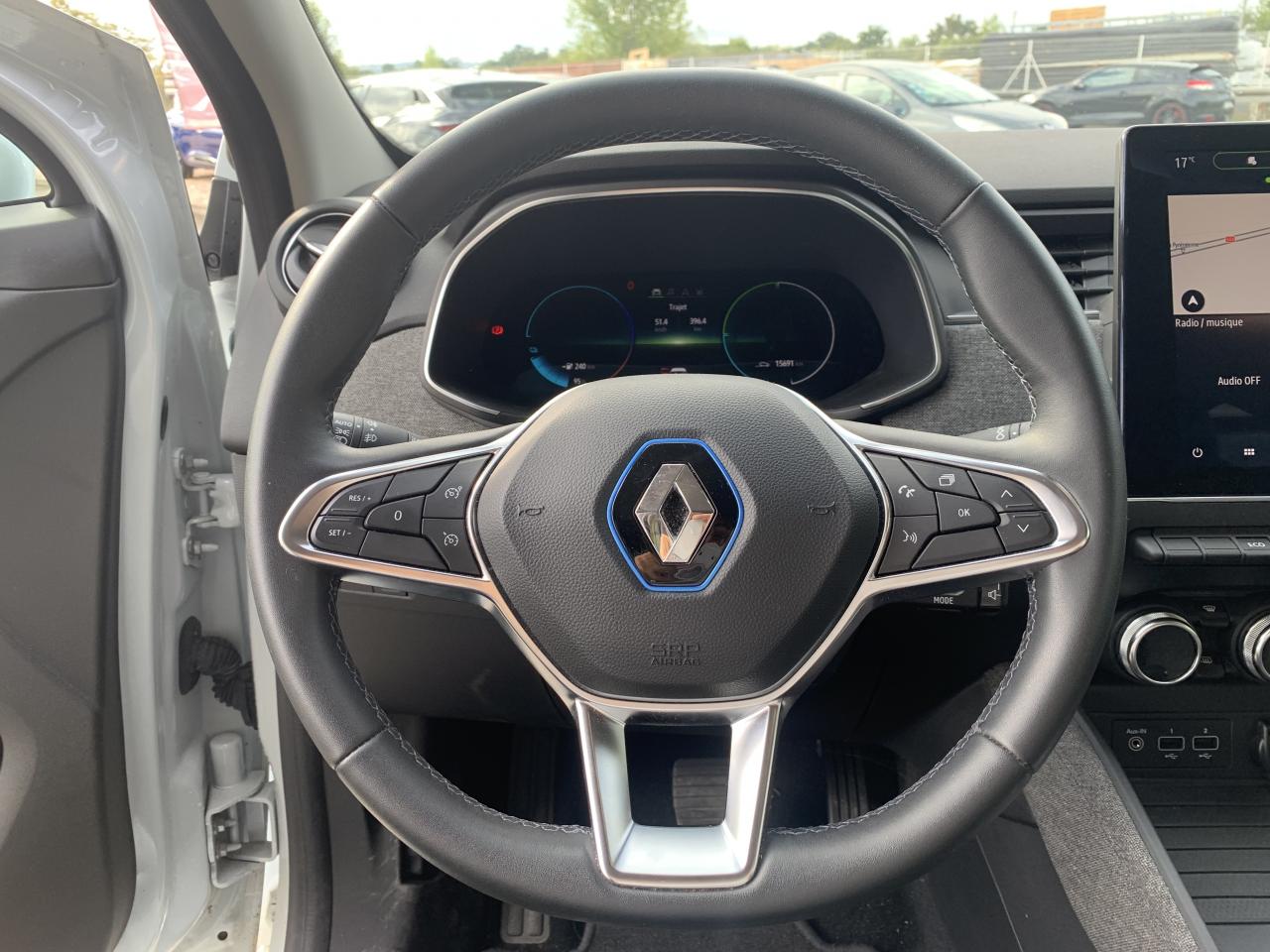 ABS avec Assistance au Freinage d'UrgenceAide au démarrage en côteAide au parking avant / arrière et caméra de reculAlerte de franchissement de ligneAlerte de survitesse avec reconnaissance des panneaux de signalisationAllumage automatique des feux et des essuie-vitresAssistance au maintien de voieBluetoothCâble de recharge Flexi Charger (6,5 m) pour prise Green Up Access et prises domestiquesCarte Renault, accès et démarrage « mains-libres »Chargeur de smartphone par inductionClimatisation automatiqueCondamnation automatique des ouvrants en roulantContrôle dynamique de trajectoire (ESP) avec fonction antipatinage (ASR) et contrôle de sous-virage (CSV)Détecteur d'angle mortFeux arrière LEDFeux de jour à LED avec signature lumineuse en forme de "C"Fixations ISOFIX pour siège passagerFrein de parking automatiqueGestion automatique des feux de route /feux de croisementJantes Alliage 16" Elective diamantéesLève-vitre impulsionnel côté conducteurLève-vitres électrique ARLève-vitres avant électriquesLevier de vitesse e-Shifter avec mode BLevier de vitesse en cuirProgramme Eco-modeProjecteurs antibrouillard LED avec fonction corneringProjecteurs Full LEDRégulateur et limiteur de vitesseRétroviseurs extérieurs rabattables électriquementSystème de navigationSystème de surveillance de la pression des pneusSystème Isofix aux places latérales arrièreTableau de bord numérique 10’’ personnalisableVitres et lunette arrière surteintéesVolant réglable en hauteur et en profondeurVolant simili-cuir