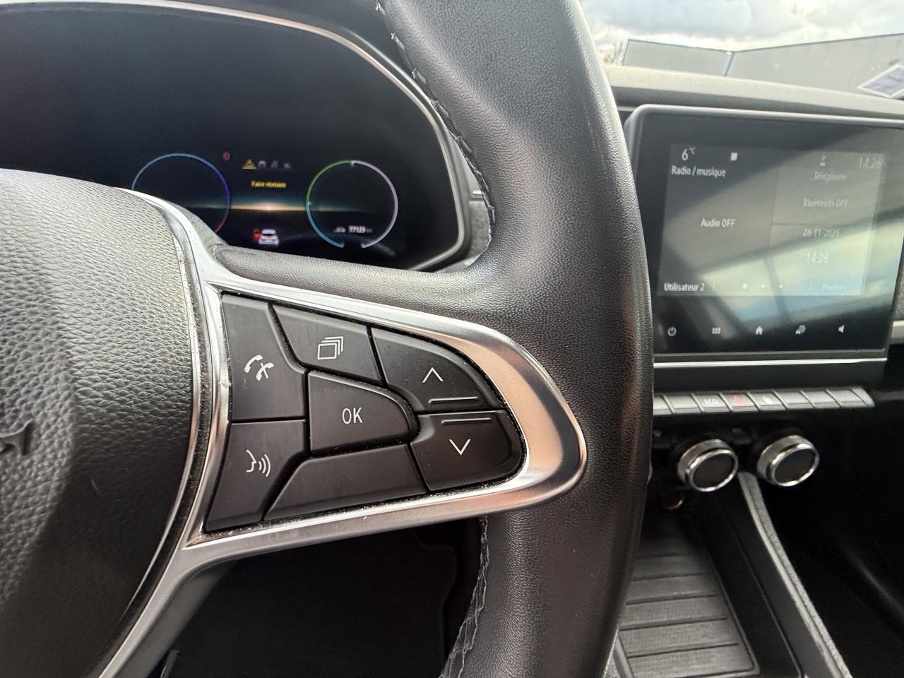 2 appuie-têtes arrière latéraux réglables en hauteur2 prises USB et prise Aux-In3 appuie-tête arrière réglables en hauteur6 haut-parleursABS avec aide au freinage d'urgenceAide au démarrage en côteAide au stationnement arrièreAirbags frontaux et latéraux conducteur et passagerAlerte de franchissement de ligneAllumage automatique des feux de détresseAssistance au maintien de voieBanquette arrière rabattable 1/3-2/3BluetoothBouton sur volant pour commande vocaleClignotants défilants à l'arrièreClimatisation automatiqueCondamnation automatique des ouvrants en roulantContrôle dynamique de trajectoire (ESP) avec fonction antipatinage (ASR) et contrôle de sous-virage (CSV)EASY LINK, écran multimédia 7”, compatible Android Auto et Apple CarPlayEssuie-glaces avant automatique avec détecteur de pluie et allumage automatique des feuxFeux arrière LEDFeux de jour à LED avec signature lumineuse en forme de "C"Frein de parking électrique avec fonction Auto-HoldGestion automatique des feux de route /feux de croisementJantes alliage 16” diamantées EridisLimiteur et régulateur de vitesse avec commandes au volantPoche aumônière au dos du siège passagerProgrammation de la charge et de la climatisation depuis le système multimédia EASY LINKProgramme Eco-modeProjecteurs avant Full Led Pure VisionRadio Numérique DABRangement bouteille 1,5 l dans portes avantReconnaissance des panneaux de signalisationRétroviseurs extérieurs électriques et dégivrantsServices connectés depuis l’application MY Renault: état de charge, préconditionnement de l’habitacle, planificateur de trajetSeuil de porte LimitedSon de prévention piéton Z.E. VoiceSystème de surveillance de pression des pneusSystème Isofix aux places latérales arrière et passager avantTableau de bord numérique 10’’ personnalisableVolant réglable en hauteur et en profondeur