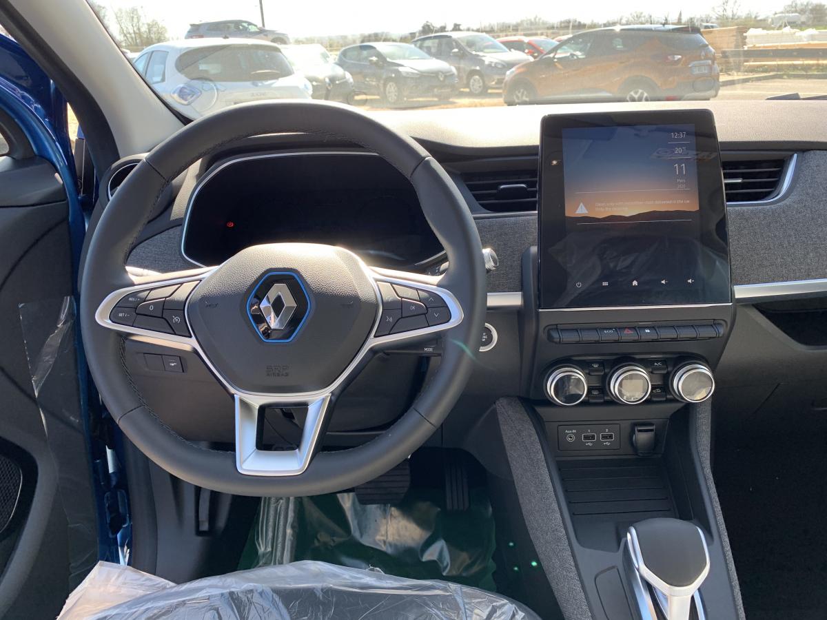 2 appuie-têtes arrière latéraux réglables en hauteur2 prises USB à l'arrière2 prises USB et prise Aux-In3ème appui-tête arrière réglable en hauteur6 haut-parleursABS avec Assistance au Freinage d'UrgenceAide au démarrage en côteAirbags frontaux et latéraux conducteur et passagerAlerte de franchissement de ligneAlerte de survitesse avec reconnaissance des panneaux de signalisationAllumage automatique des feux de détresse en cas de freinage d'urgenceAllumage automatique des feux et des essuie-vitresAssistance au maintien de voieBandeau de planche de bord et médaillon de porte en textile recyclé RecytexBanquette arrière rabattable 1/3-2/3BluetoothBoîte à gants avec couvercle fermant à cléBoîte automatique à rapport unique (réducteur)Bouton sur volant pour commande vocaleCâble de recharge Flexi Charger (6,5 m) pour prise Green Up Access et prises domestiquesCaméra de reculCapteur de qualité de l'airCarte Renault, accès et démarrage « mains-libres »Chargeur Caméléon adaptatif mono-triphasé jusqu’à 22 KWChargeur de smartphone sans fil par induction, intégré dans le rangement de console centrale avantClignotants défilants à l'arrièreClimatisation automatiqueCondamnation automatique des ouvrants en roulantContrôle dynamique de trajectoire (ESP) avec fonction antipatinage (ASR) et contrôle de sous-virage (CSV)Coque de rétroviseurs extérieurs ton caisseDétecteur d'angle mortEconomètre, jauge batterie et compteur kilométrique intégrés au tableau de bordFeux arrière LEDFeux de jour à LED avec signature lumineuse en forme de "C"Fonction Auto-HoldFrein de parking automatiqueGestion automatique des feux de route /feux de croisementGrille de calandre chroméeHarmonie noirKit gonflage de réparationLève-vitre impulsionnel côté conducteurLève-vitres électrique ARLève-vitres avant électriquesLevier de vitesse e-Shifter avec mode BLevier de vitesse en cuirLimiteur et régulateur de vitesse avec commandes au volantPeinture Blanc GlacierPneumatiques Michelin Primacy 4-EPoche aumônière au dos du siège passagerPoignées de portes ton caisseProgrammation de la charge et de la climatisation depuis le système multimédia EASY LINKProgramme Eco-modeProjecteurs antibrouillard LED avec fonction corneringProjecteurs Full LEDRétroviseur électrochrome jour / nuit adapté capteur luminosité et pluieRétroviseurs extérieurs électriques dégivrantsRétroviseurs extérieurs rabattables électriquementRadio Numérique DABRangement bouteille 1,5 l dans portes avantSellerie mixte Simili Cuir / tissu recyclé RecytexService Auto-Update - 3 ans inclusServices connectés depuis l’application MY Renault: état de charge, préconditionnement de l’habitacle, planificateur de trajetSon de prévention piéton Z.E. VoiceSystème d'aide au parking avant et arrièreSystème de navigationSystème de surveillance de la pression des pneusSystème Isofix aux places latérales arrière et passager avantTableau de bord numérique 10’’ personnalisableVéhicule connecté 4G avec pack de données inclus pendant 3 ansVitres et lunette arrière surteintéesVolant réglable en hauteur et en profondeurVolant simili-cuir